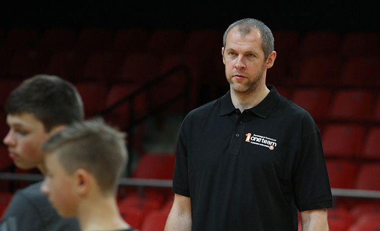 One of the “One Team” coaches Arminas Vareika tried to make sure that kids think not only about basketball but also about their performance in school and avoiding drugs or alcohol.