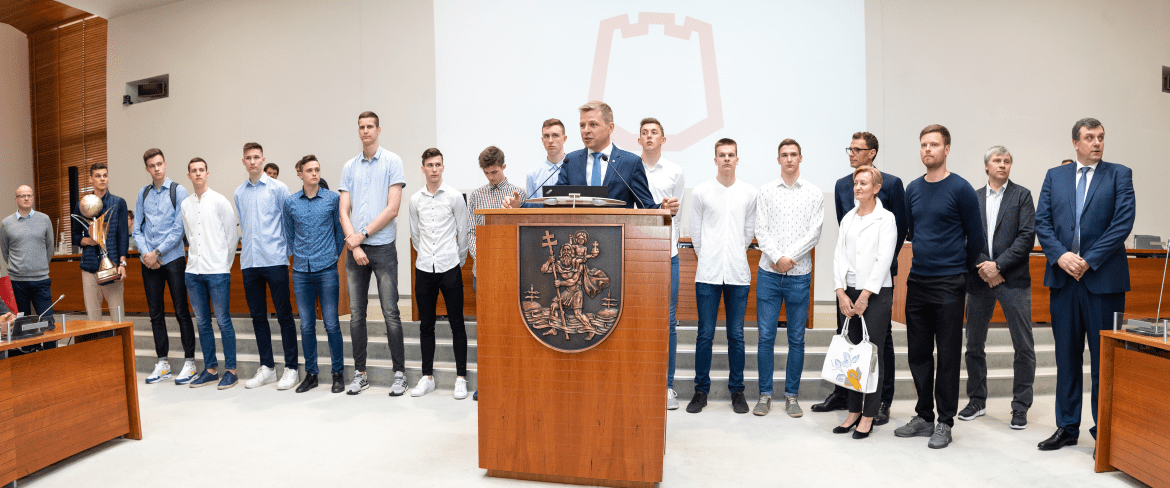 Europos čempione tapusi „Lietuvos ryto“ jaunimo komanda buvo pagerbta Vilniaus miesto savivaldybėje